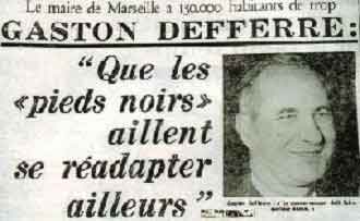 "Ils fuient. Tant pis ! En tout cas je ne les recevrai pas ici. D'ailleurs nous n'avons pas de place. Rien n'est prêt. Qu'ils aillent se faire pendre où ils voudront ! En aucun cas et à aucun prix, je ne veux des pieds-noirs à Marseille".