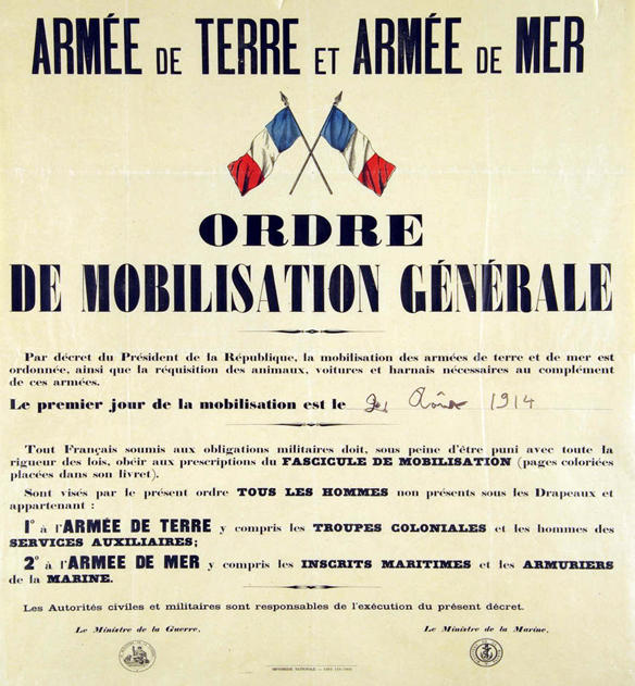 On notera cependant qu'il ignorait encore que la guerre avait été déclarée à la France par l'Allemagne le 3 août (car si dans la cas du 44ème RI, on lit dans le journal de marche " 3 août :... à 22 heures, le colonel est averti par la Division que l'ambassadeur d'Allemagne a demandé ses passeports et que par suite l'état de guerre existe entre la France et l'Allemagne ", le journal du 12ème chasseurs n'indique qu'au " 5 août. [...] Le 12e chasseurs apprend à 4 heures que la guerre est décrétée. ")